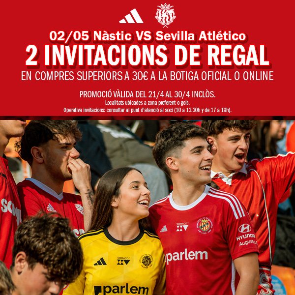 Compra a la botiga oficial i aconsegueix dues entrades de franc pel Nàstic – Sevilla Atlético